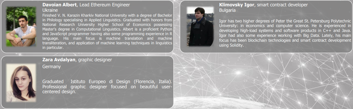 - Unsold tokens will remain with the project team and, if necessary, will be offered in the stock market further.