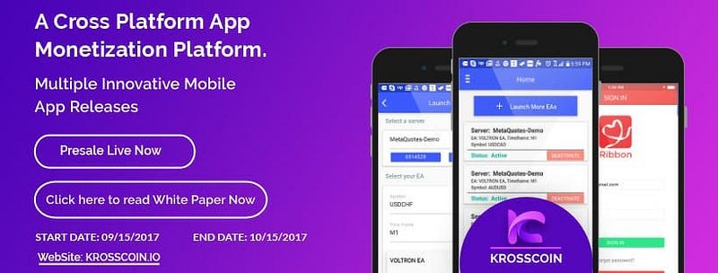 An API interface allows for rapid integration of monetization, while payment gateways and banking relationships are unnecessary as users pay for application usage with KSS tokens, while developers are paid in KSS tokens. Our first apps utilizing the Krosscoin Platform is the patent pending Pipdroid app family. Pipdroid provides mobile execution and management of cloud-based (crypto) trading bots.